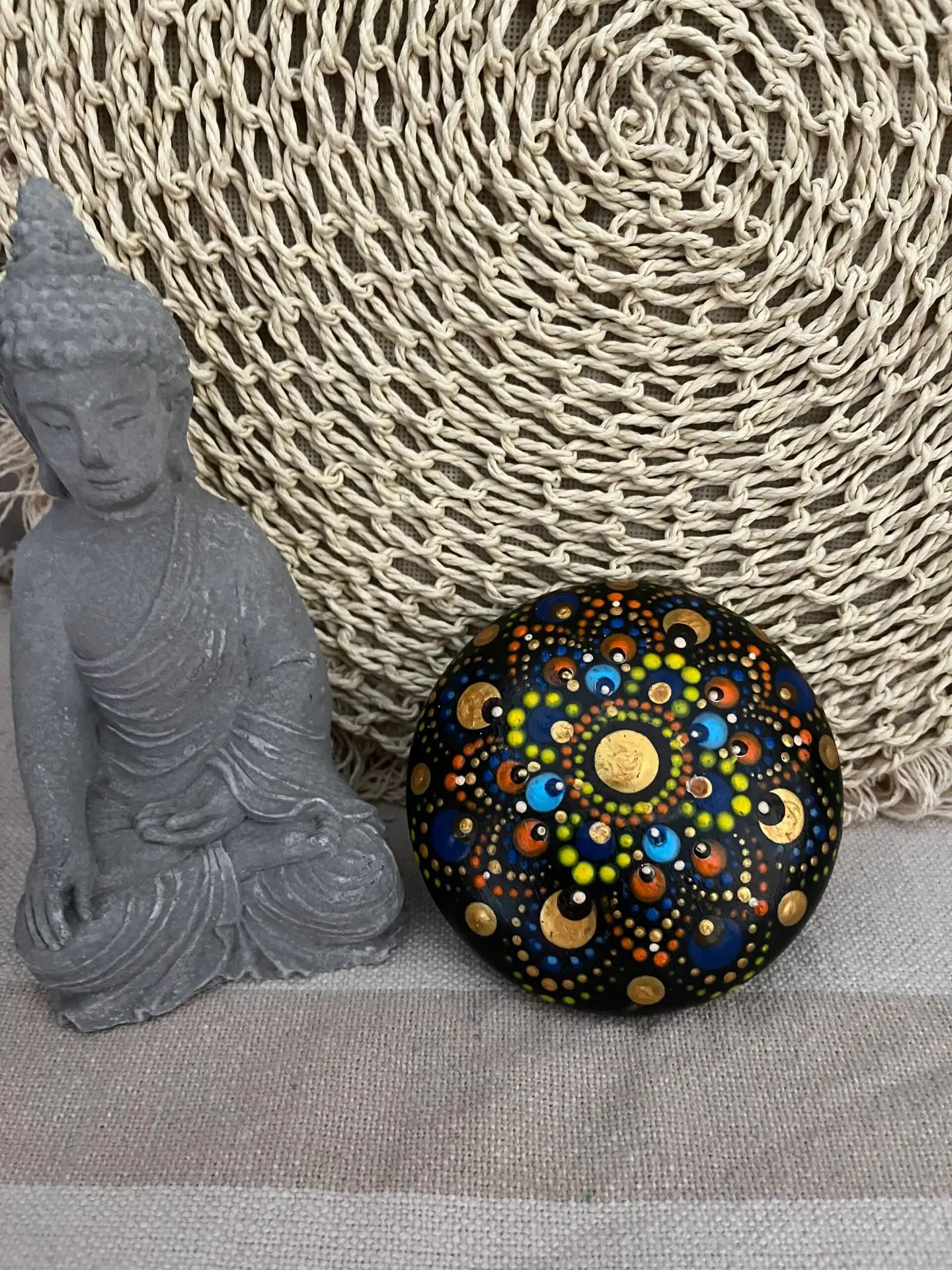 Volgens Vastu is het noordoosten de meest spiritueel krachtige plek in een ruimte. Het plaatsen van deze mandala steen in die hoek kan intuïtie, inzicht en mentale scherpte ondersteunen. Ideaal voor een meditatieplek, werkruimte of studeerhoek.